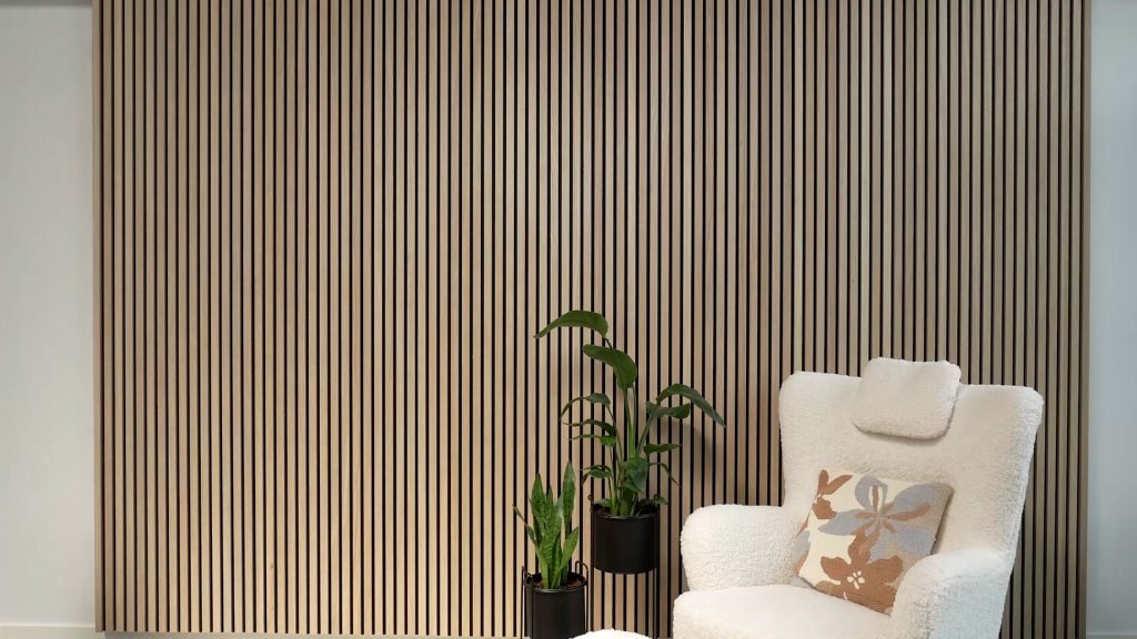 To get a neat finish to your wall, you can add end-lamellas. Each panel has a felt and a slat side. In case your wall ends with a slat side, you will need to cut off the final slat in order to make sure that the panels gets two felt sides.